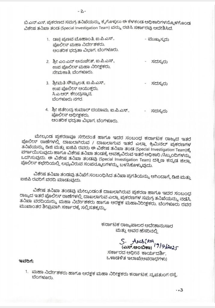 ಪ್ರಣವ್ ಮೊಹಂತಿ, ಎಂಎನ್ ಅನುಚೇತ್, ಸೌಮ್ಯಲತಾ ಹಾಗೂ ಜಿತೇಂದ್ರ ಕುಮಾರ್ ಸೇರಿದಂತೆ ನಾಲ್ಕು ಮಂದಿ ಐಪಿಎಸ್ ಅಧಿಕಾರಿಗಳ ನೇತೃತ್ವದಲ್ಲಿ ತನಿಖಾ ತಂಡ ರಚನೆ ಮಾಡಲಾಗಿದೆ.