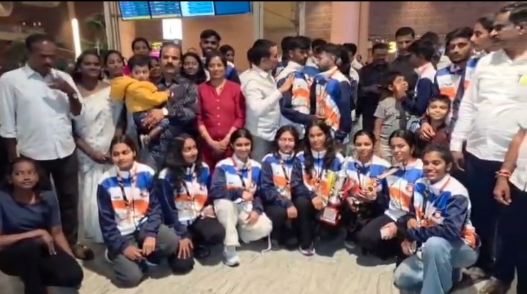ಕಾಂಬೋಡಿಯಾ ದಲ್ಲಿ ನಡೆದ ಅಂತರಾಷ್ಟ್ರೀಯ ಥ್ರೋಬಾಲ್ ಪಂದ್ಯದಲ್ಲಿ ಭಾಗವಹಿಸಿ ಭರ್ಜರಿ ಜಯಗಳಿಸಿದ ಭಾರತದ ಕ್ರೀಡಾಪಟುಗಳಿಗೆ ದೇವನಹಳ್ಳಿ ಏರ್ ಪೋರ್ಟಿನಲ್ಲಿ ಅದ್ಧೂರಿಯಾಗಿ ಸ್ವಾಗತಿಸಿದ್ದಾರೆ.